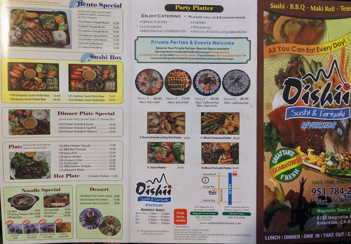 Welcome to Oishii Sushi, Riverside's hidden gem, located at 6133 Magnolia Ave, CA 92506. This Japanese restaurant specializes in sushi and offers an array of delightful options for every palate.