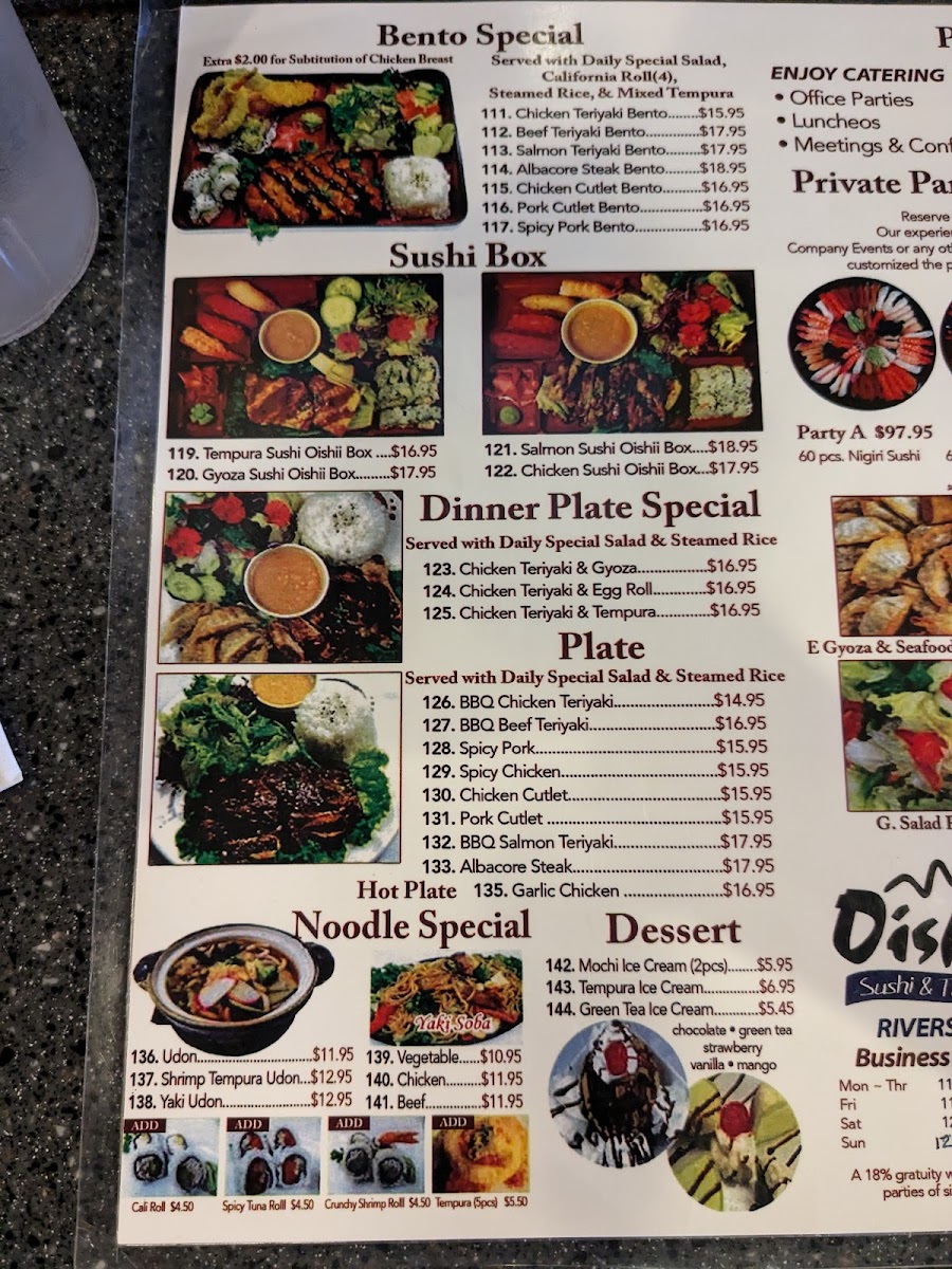 On the menu, you will find enticing teriyaki dishes such as BBQ Chicken and BBQ Beef, alongside satisfying bento specials like Salmon Teriyaki and Spicy Pork. Each dish showcases fresh ingredients and authentic flavors, perfect for a quick lunch or a leisurely dinner.